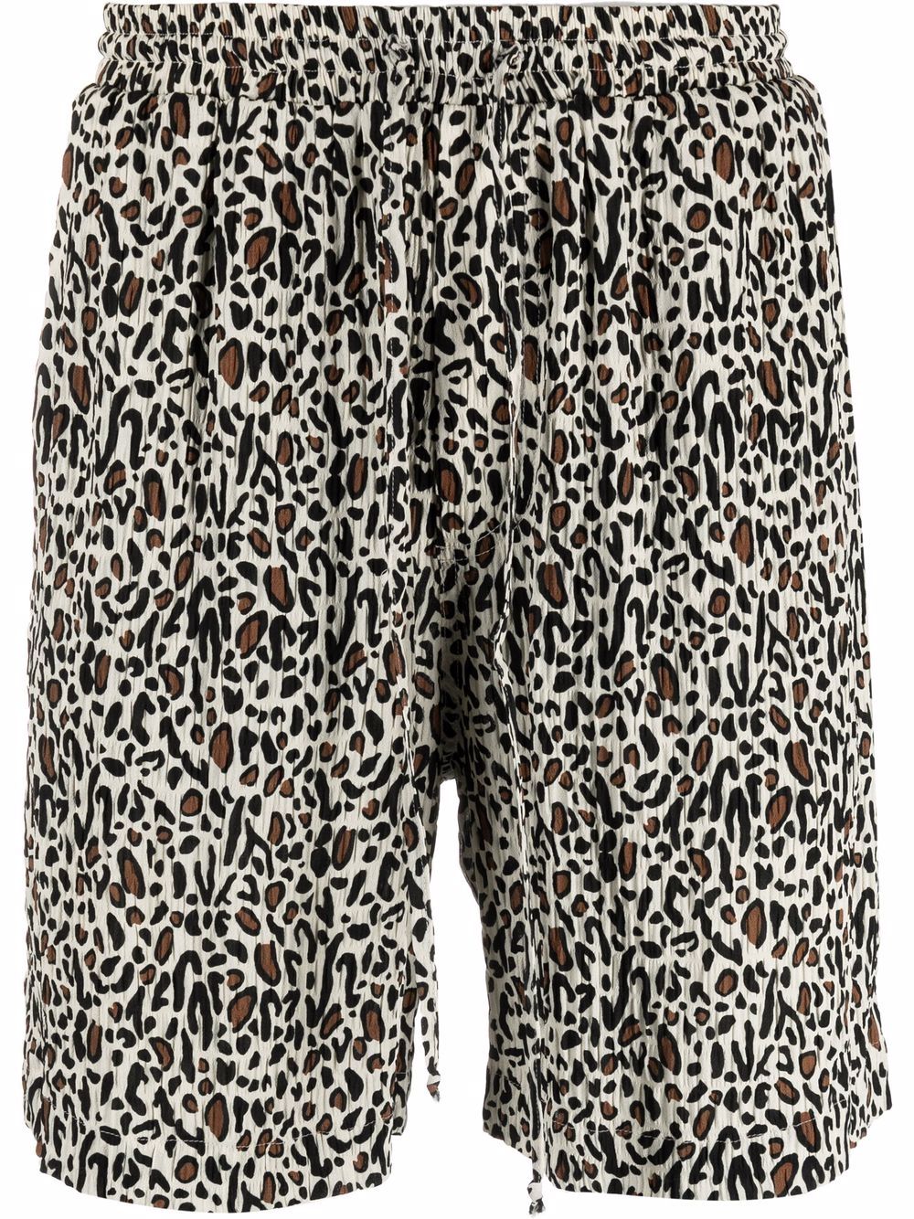 Creme-white/jet-black leopard-print track shorts from NANUSHKA featuring all-over leopard print, drawstring fastening and two diagonal pockets to the sides.