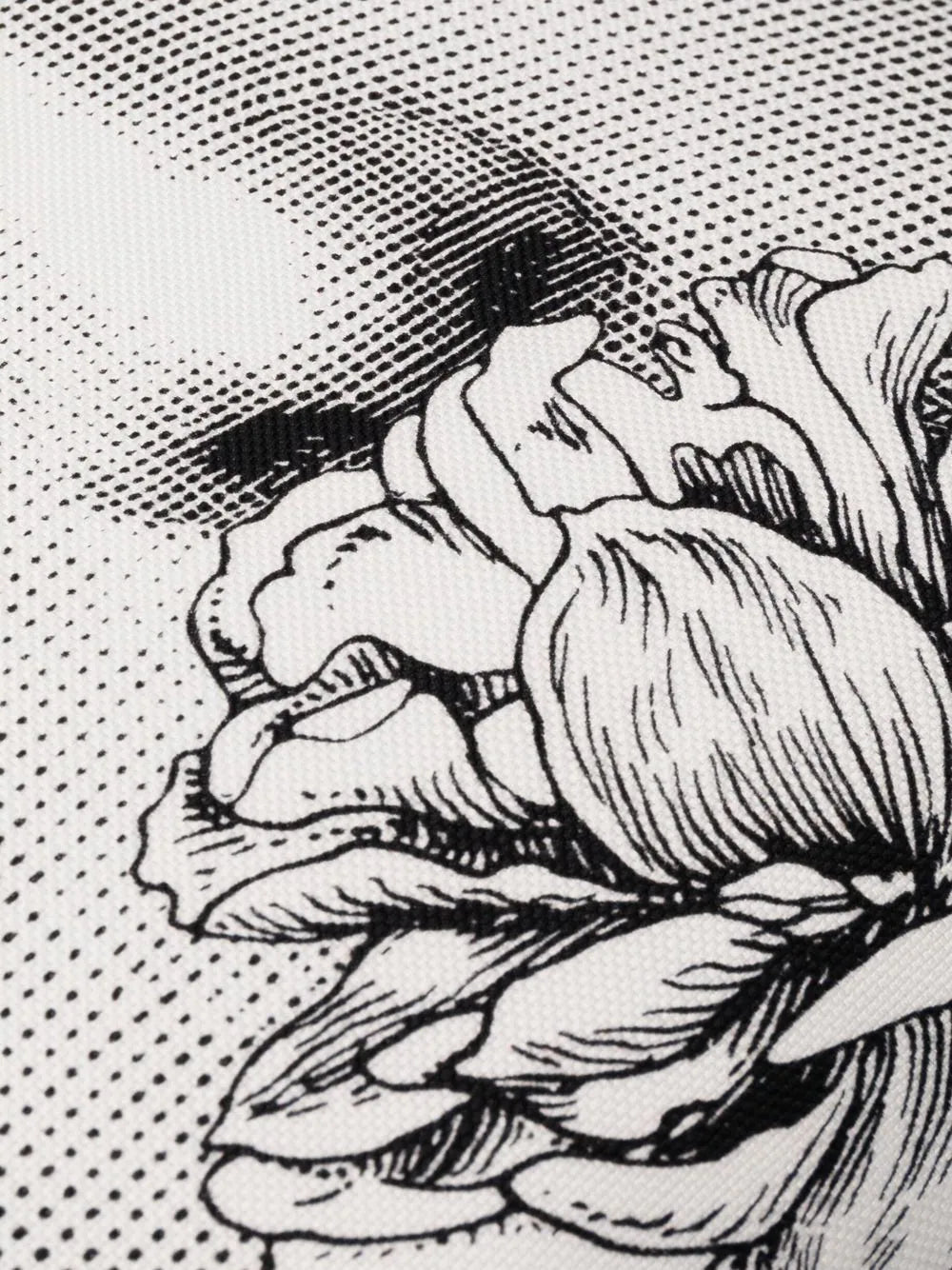 White/black cotton Lina Cavalieri-print cushion from FORNASETTI featuring square shape, signature Lina Cavalieri print and logo patch to the side.