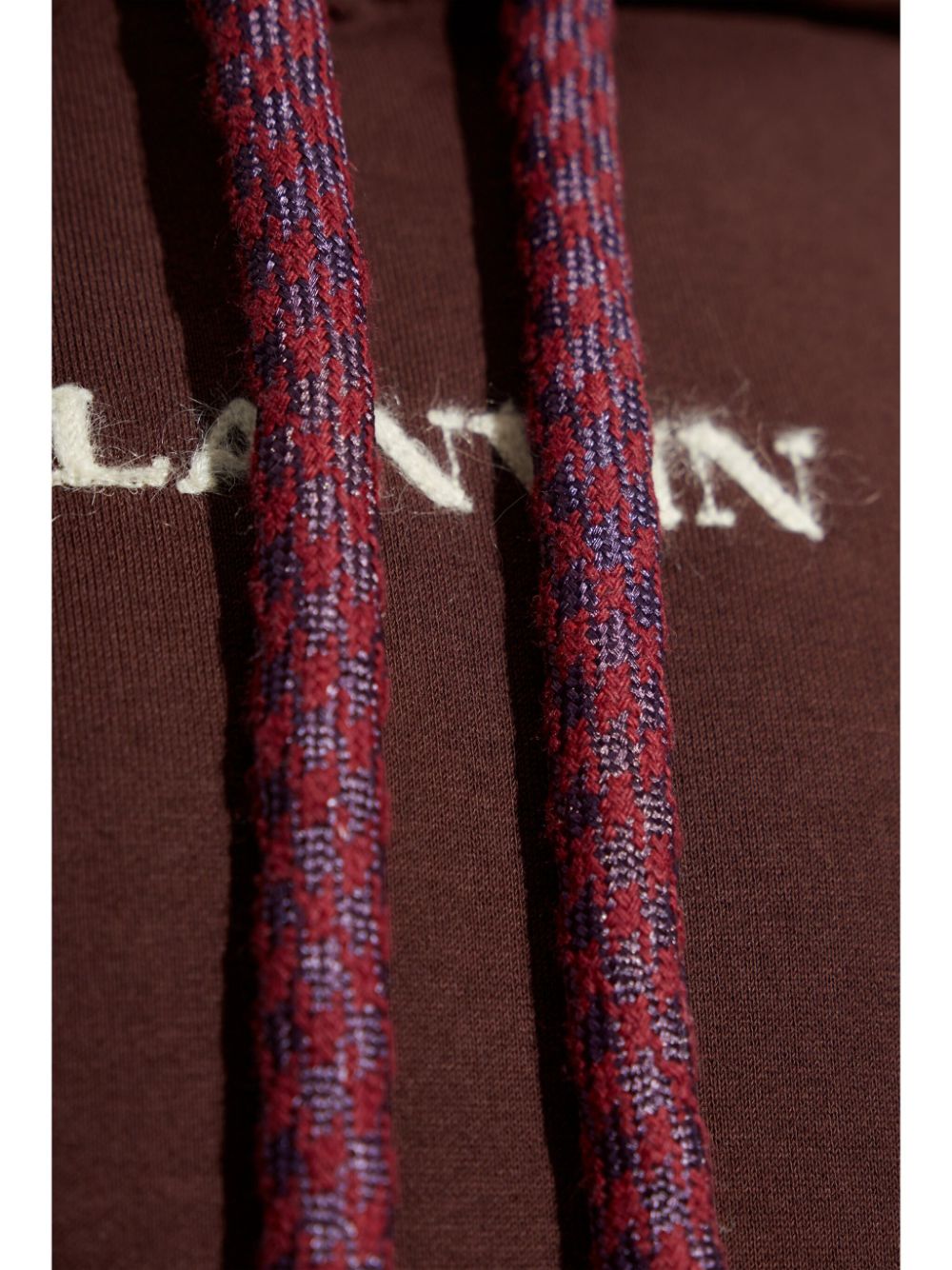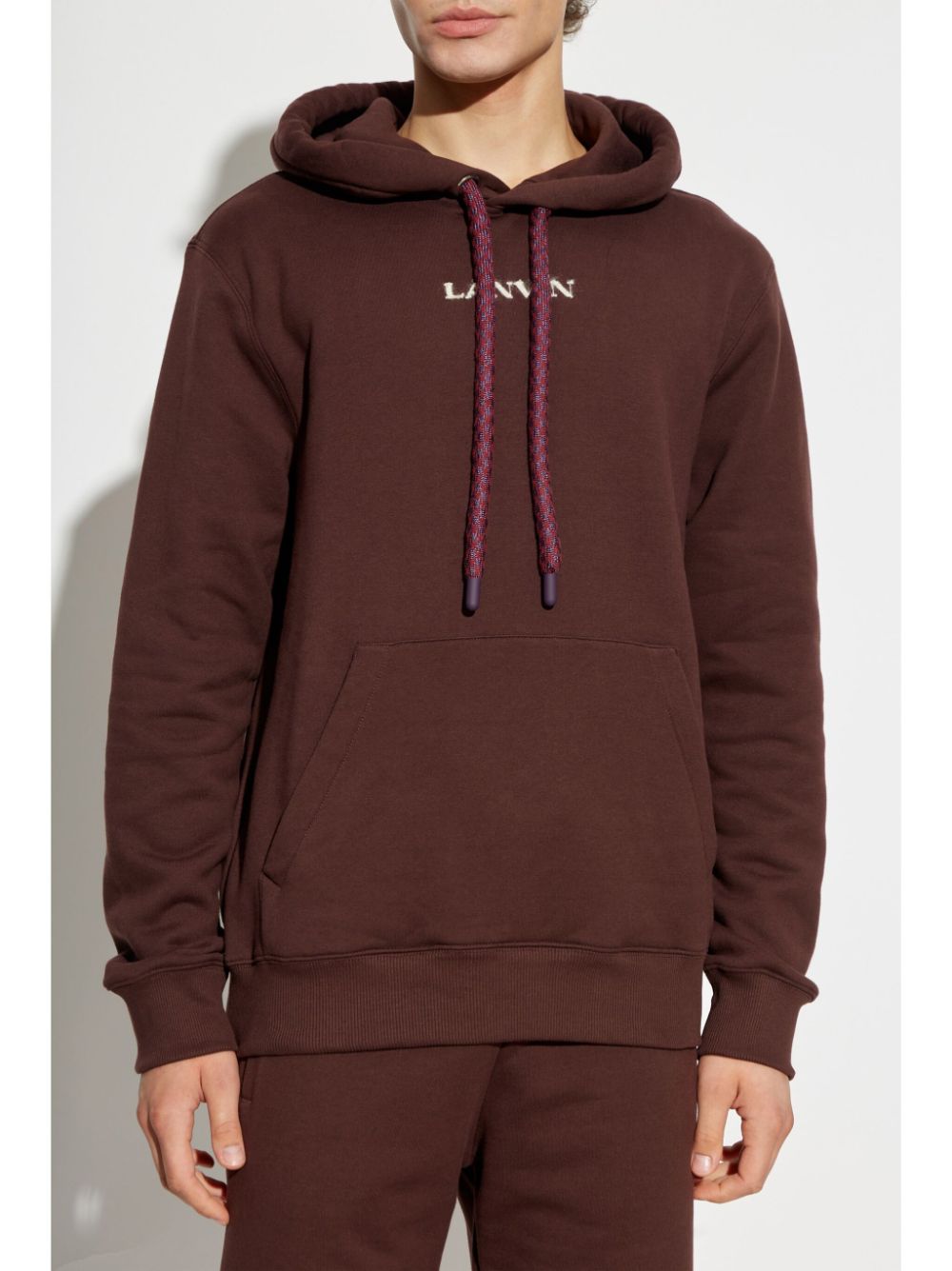 Stay warm and stylish with our Logo-Embroidered Hoodie. Made with cozy dark red cotton, this hoodie features an embroidered logo on the front for a touch of flair. The drawstring hood, front pouch pocket, and long sleeves make this hoodie both practical and fashionable. Perfect for any casual occasion.