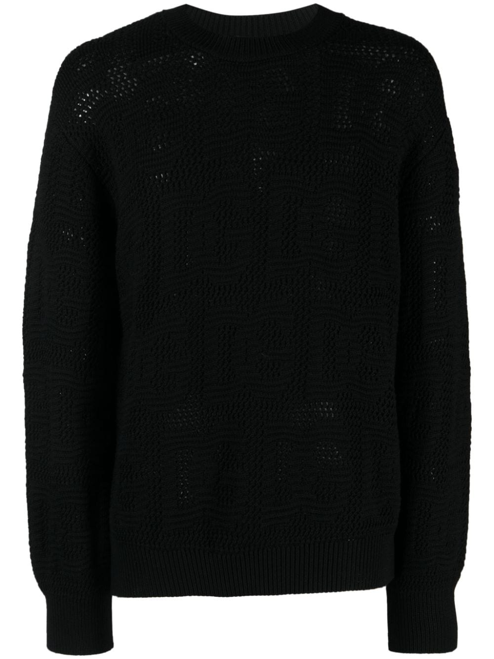 logo-jacquard virgin-wool jumper from DOLCE & GABBANA featuring black, virgin wool, jacquard logo motif, ribbed trim, crew neck, drop shoulder, long sleeves and straight hem.