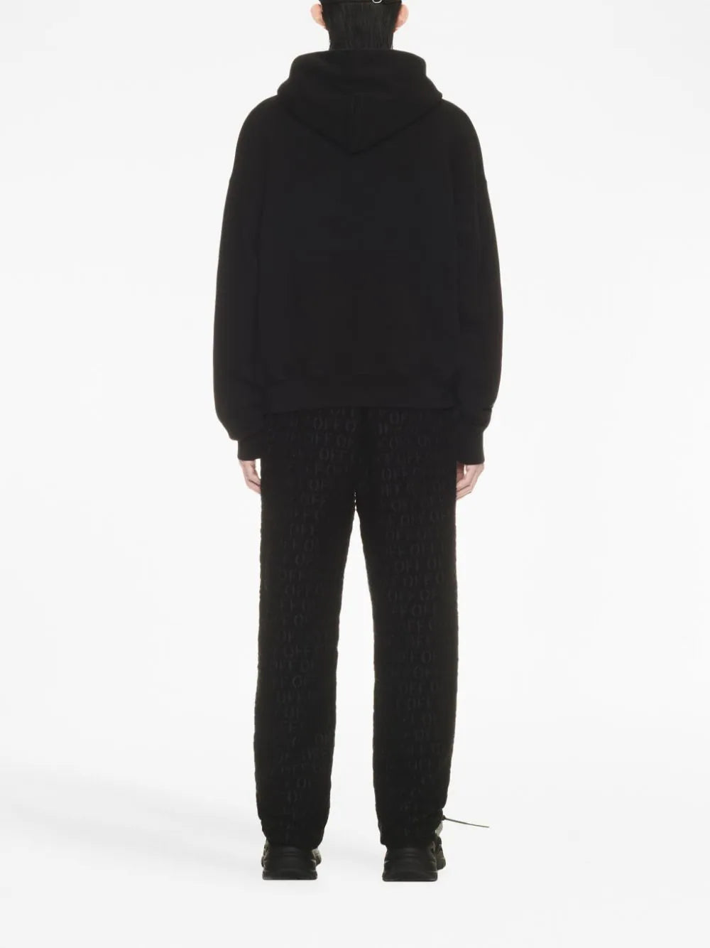 logo-print cotton hoodie from OFF-WHITE featuring black, cotton, logo print at the chest, drawstring hood, front pouch pocket, drop shoulder, long sleeves, ribbed cuffs and hem and straight hem.