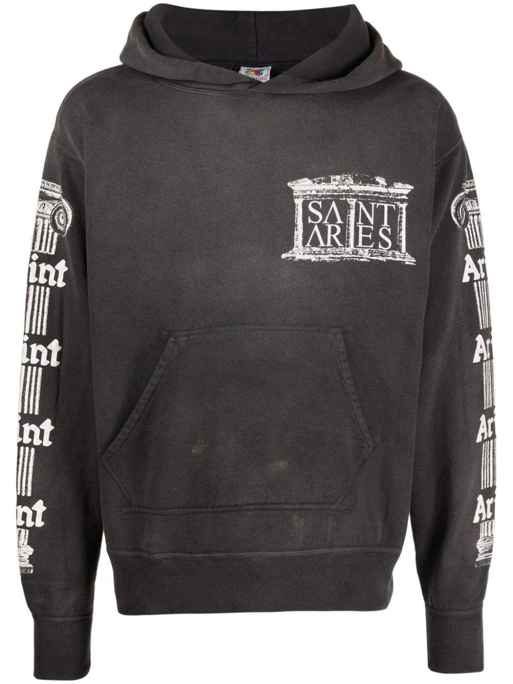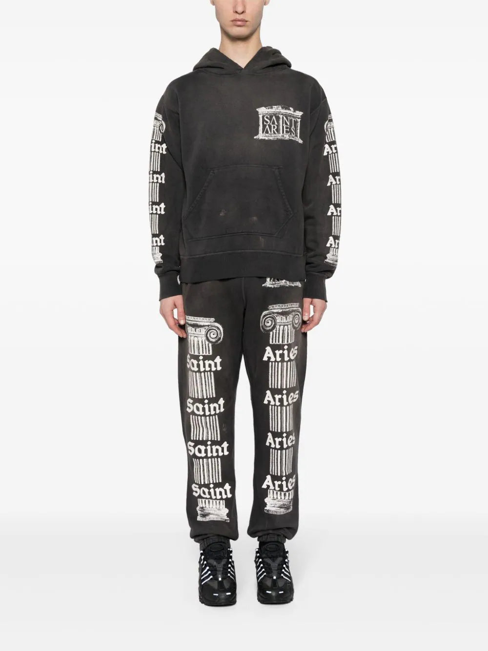 dark grey cotton jersey texture all-over logo print all-over graphic print classic hood front pouch pocket long sleeves straight hem