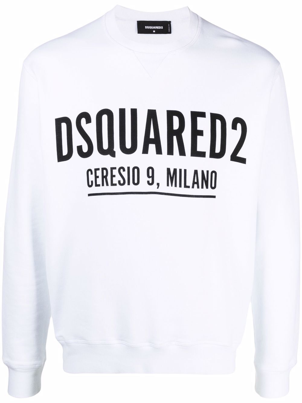 White cotton logo-print sweatshirt from DSQUARED2 featuring jersey knit, logo print at the chest, crew neck and elasticated trim.