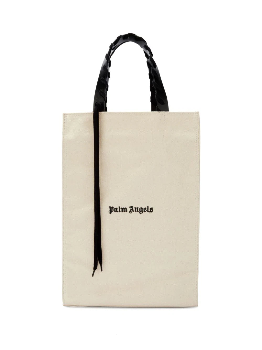light beige/black canvas logo print to the front lace-up detailing leather top handles open top main compartment