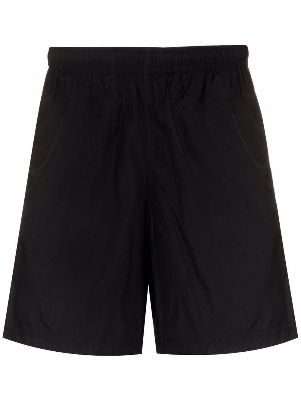 Black logo-tape swim shorts from Alexander McQueen featuring logo-tape detailing and elasticated waistband. Be mindful to try on swimwear over your own garments..