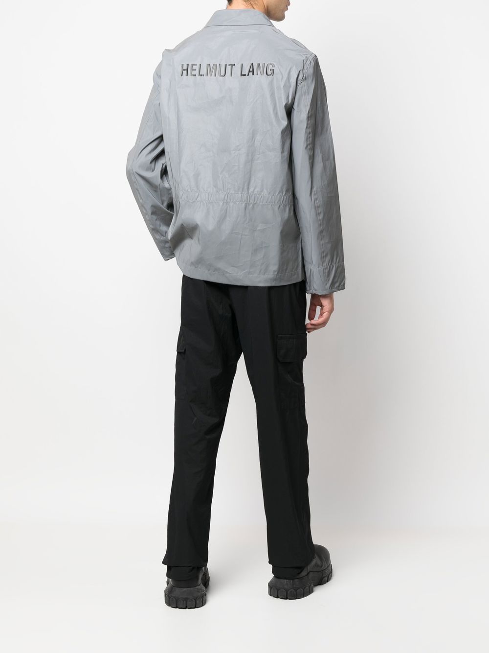 logo zipped jacket from HELMUT LANG featuring grey, logo print at the chest, classic collar, front zip fastening and long sleeves.