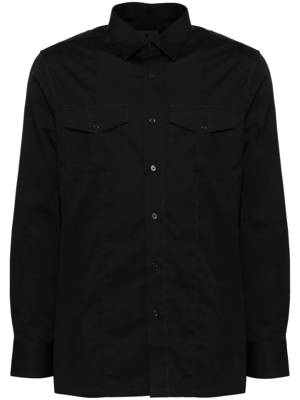 Indulge in effortless style with our midnight blue long-sleeved shirt. Made from a luxurious cotton blend, this shirt features a front button fastening, two button-fastening chest pockets, and buttoned cuffs for a sophisticated touch. Perfect for any occasion, it will elevate your wardrobe to the next level.