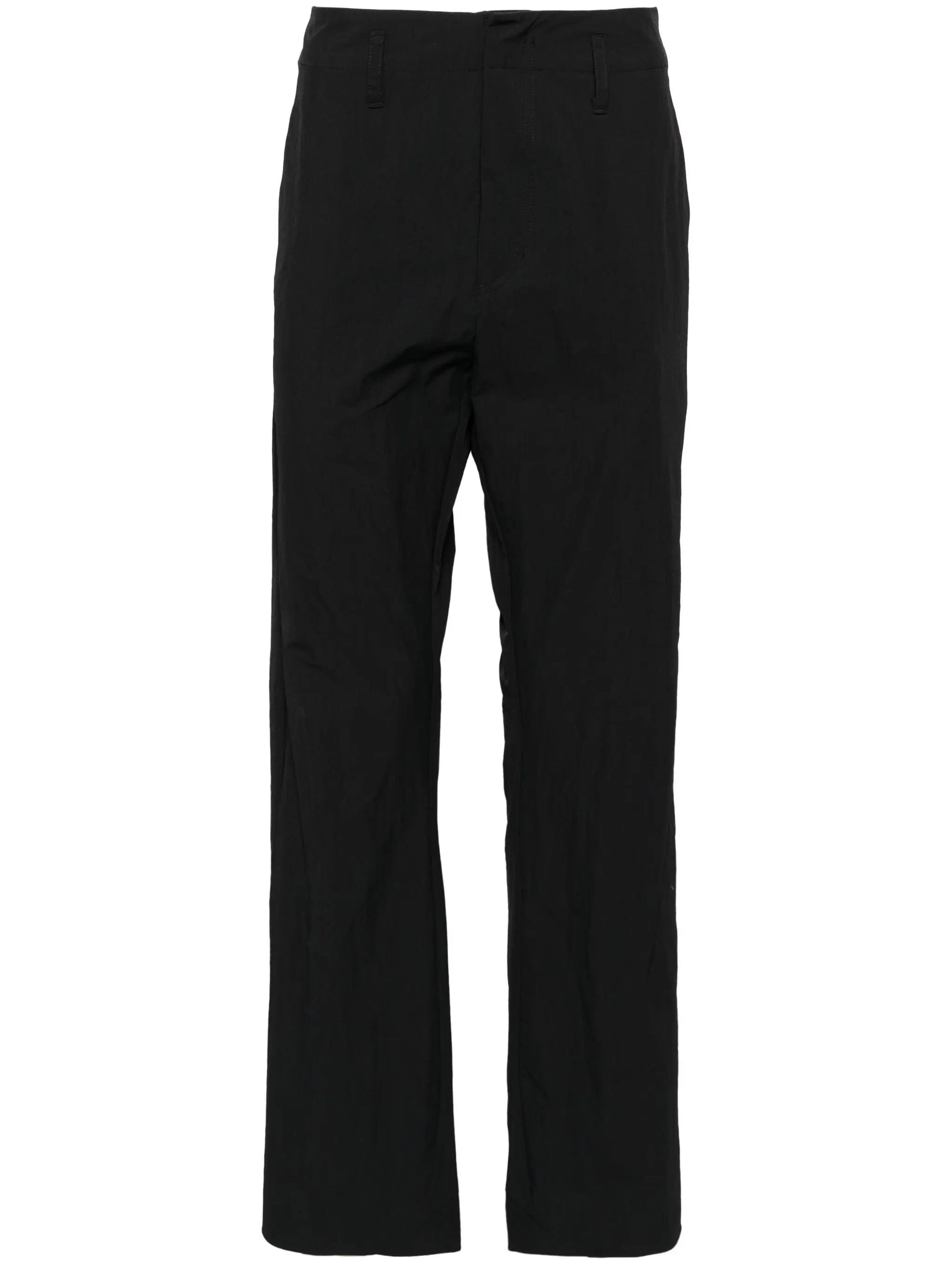 black water-resistant mid-rise belt loops concealed front fastening straight leg slip pockets to the sides