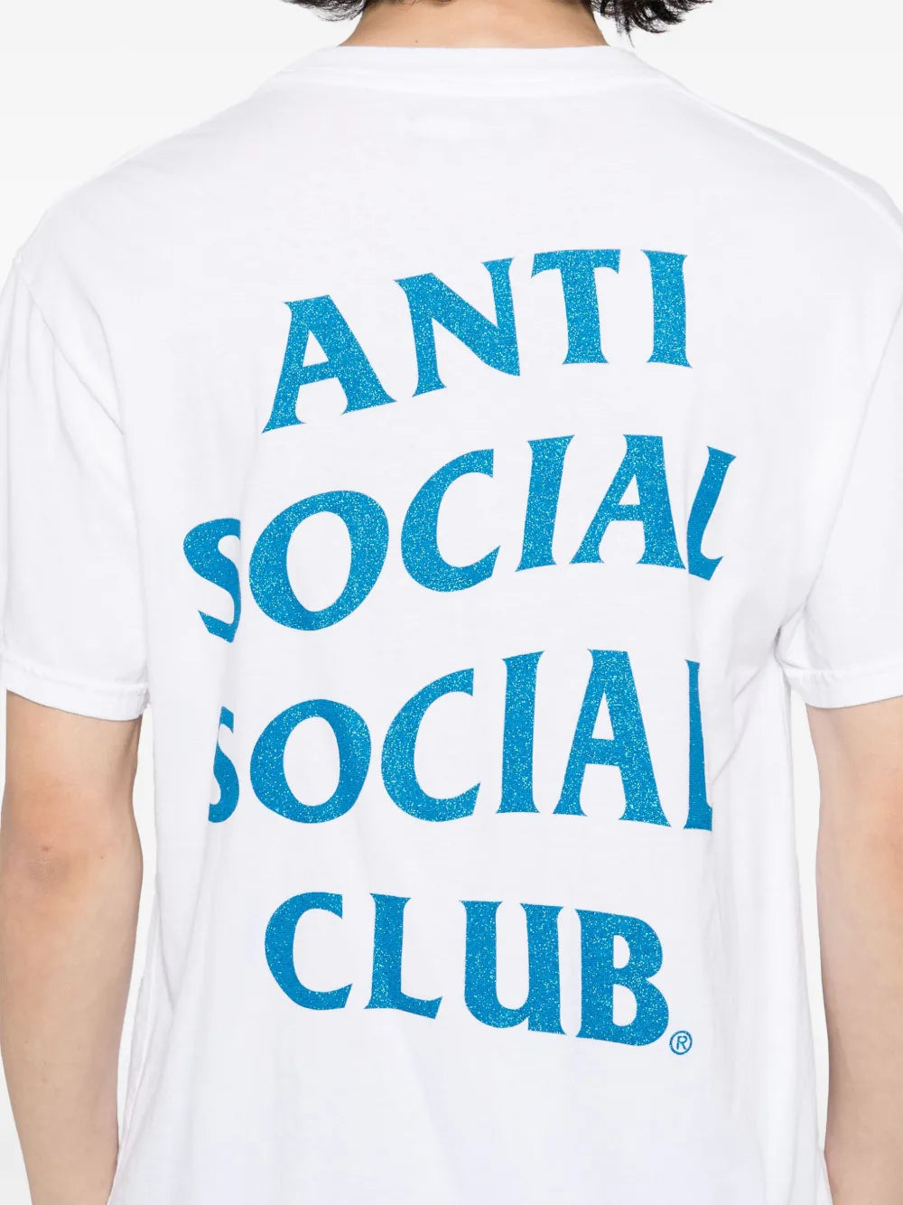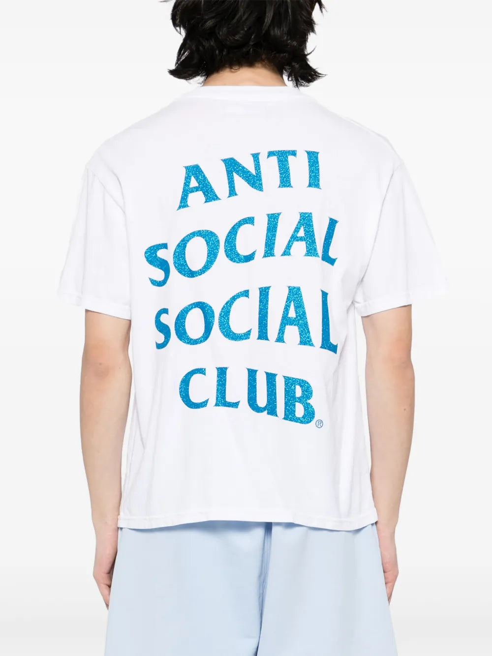 This white crew neck t-shirt showcases a distinctive "Mind Games" glitter logo print at the chest. The precision-applied glitter elements create a sophisticated visual contrast against the clean white base, offering a refined interpretation of statement casual wear with exceptional durability and dimensional appeal.