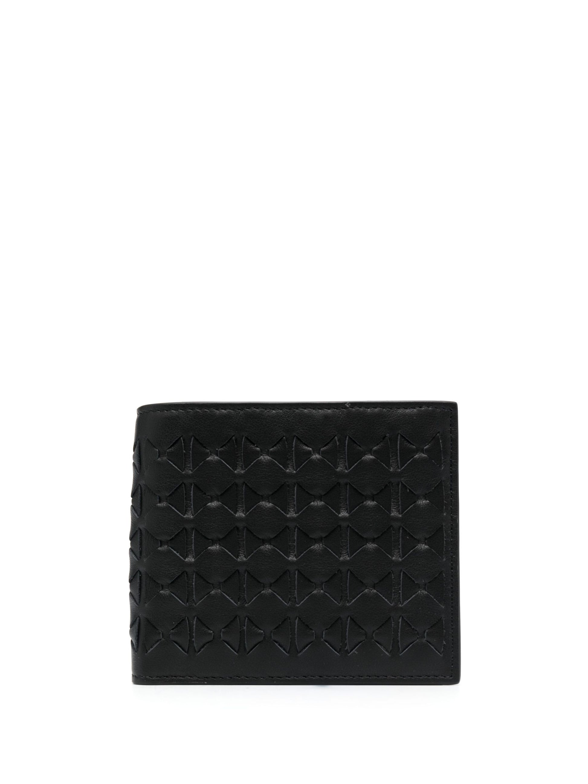Mosaico bi-fold leather wallet from SERAPIAN featuring black, calf leather, mosaic detailing, bi-fold design, internal logo stamp, internal card slots and internal note compartments.
