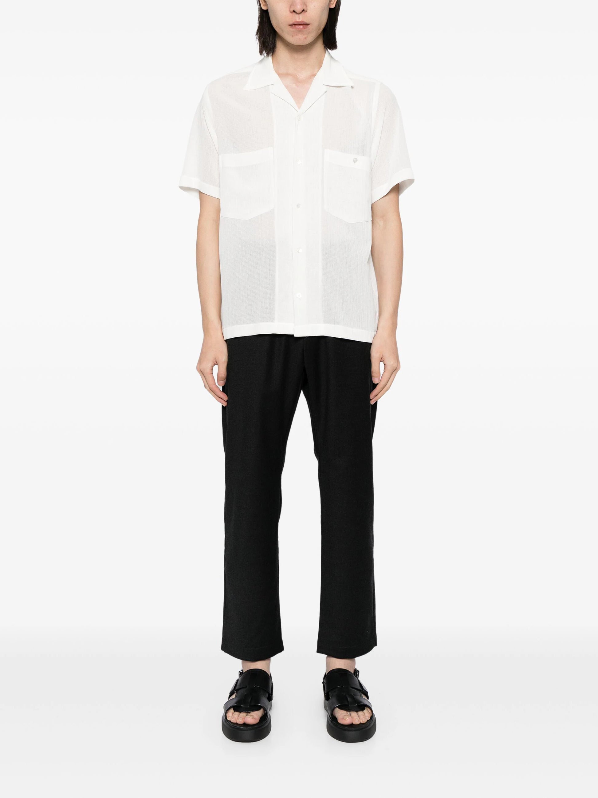 anthracite wool blend twill weave elasticated waistband with internal drawstring two side slit pockets two rear patch pockets straight leg straight hem