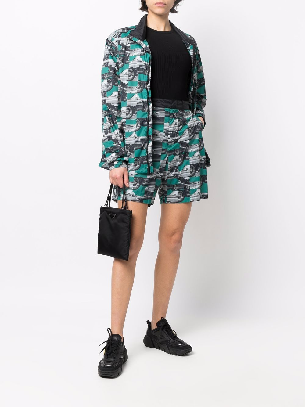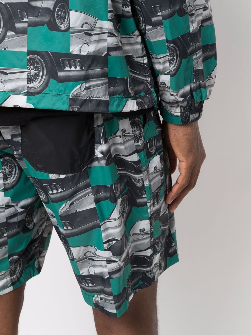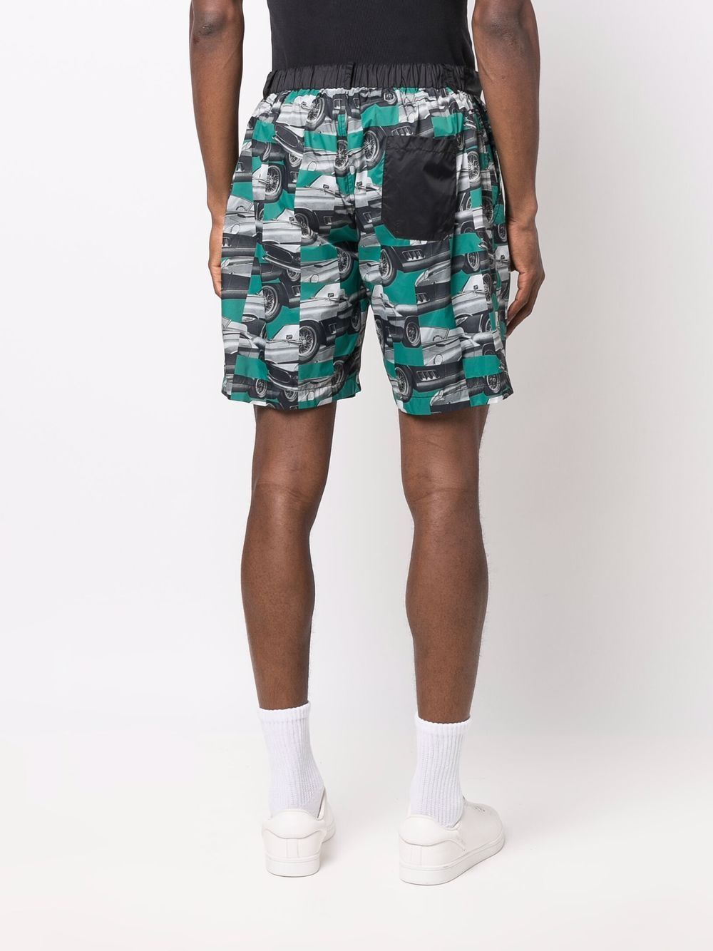 Green/white/black patchwork photograph-print shorts from Ferrari featuring patchwork design, concealed clasp fastening, belt loops and two rear patch pockets. When buying this unisex item, keep in mind that it is graded in standard men's sizing..