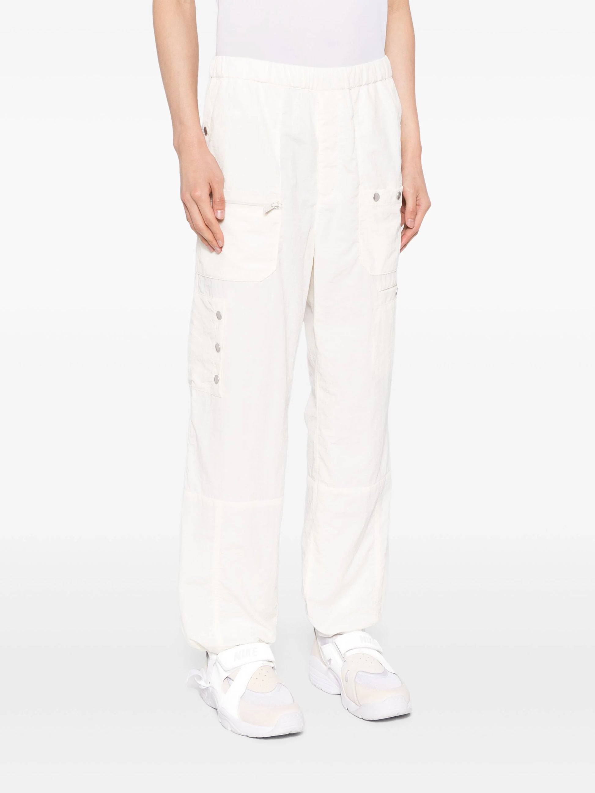 neutrals white mesh lining elasticated waistband with internal drawstring multiple patch pockets front zip fastening straight hem
