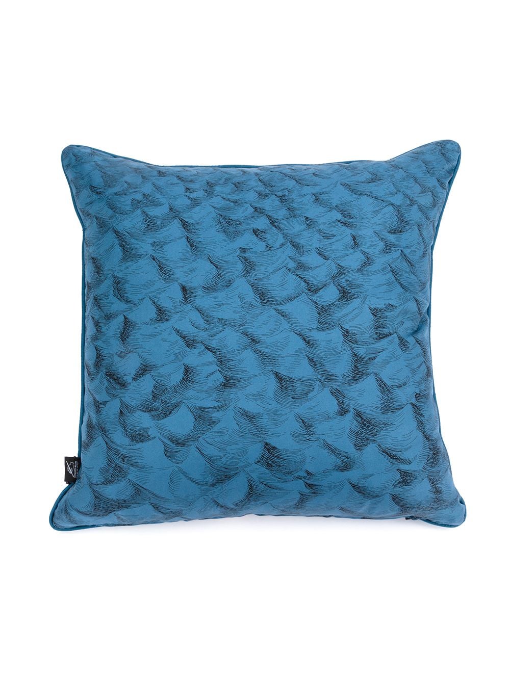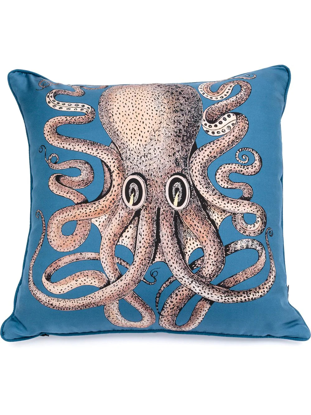 Blue/multicolour silk Polipo graphic-print cushion from Fornasetti featuring graphic print, logo tag and square body.