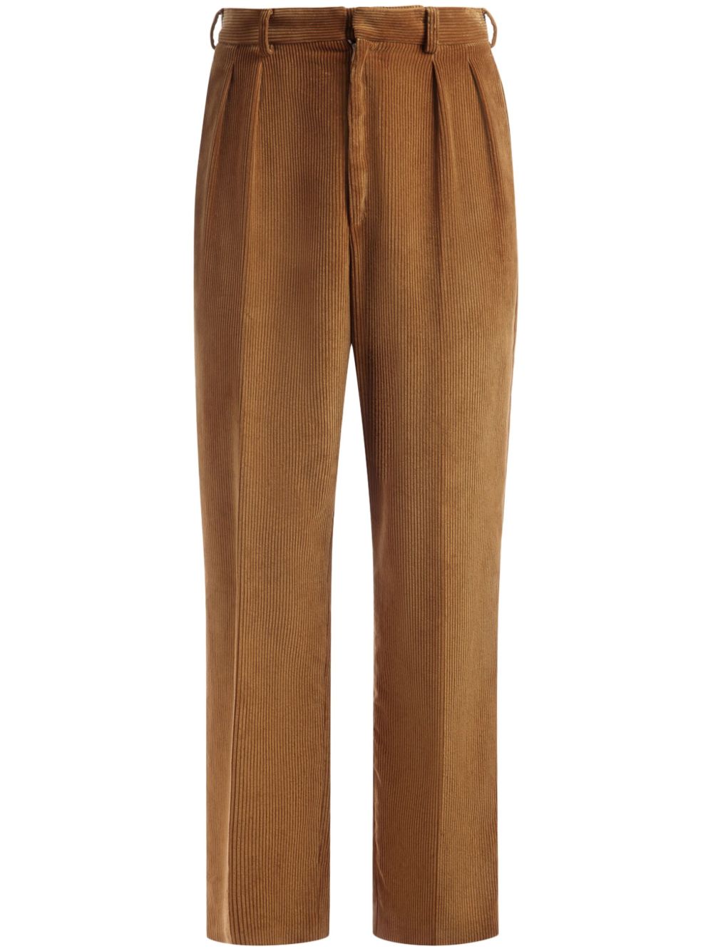 pressed-crease tailored trousers from BALLY featuring brown, front button and zip fastening, gathered detailing and pressed crease.