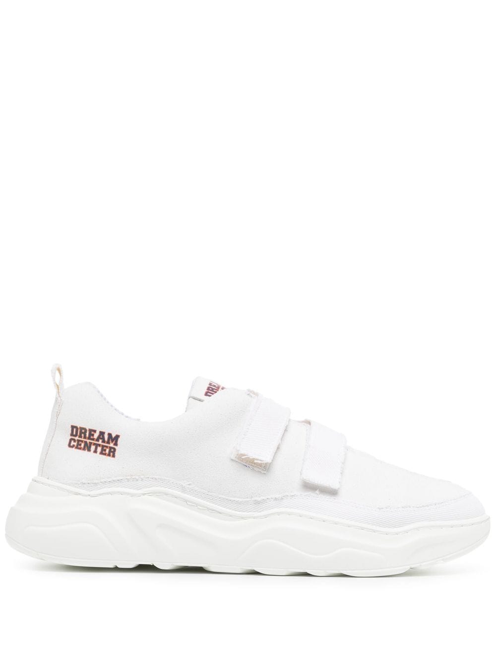 printed low-top sneakers from PHILEO PARIS featuring white, recycled nylon, faux suede, canvas, graphic print to the rear, logo print to the side, pull-tab at the heel, front touch-strap fastening, round toe, branded footbed and chunky rubber sole.