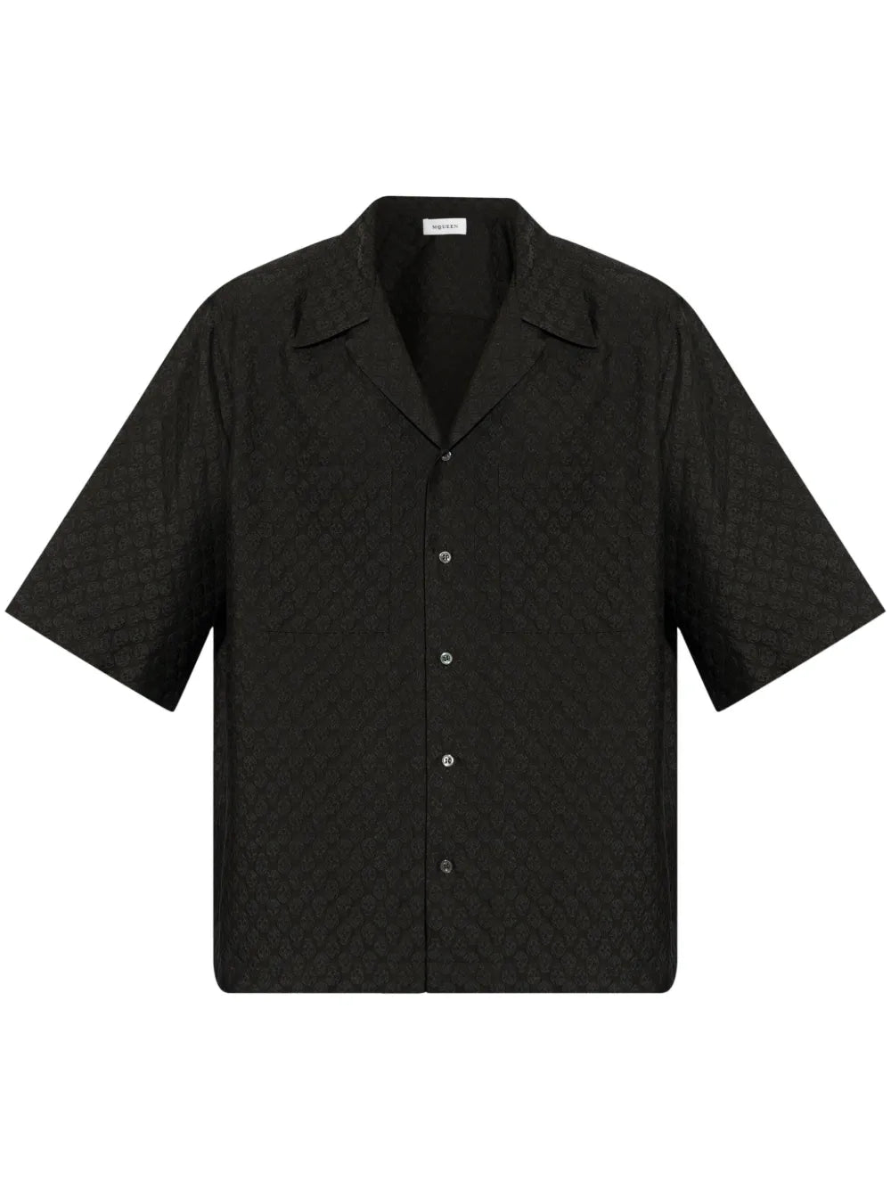 This black printed shirt features a convenient front button fastening and a chest patch pocket, making it both stylish and functional. The short sleeves provide a cool and comfortable fit. Perfect for any occasion, this shirt is a must-have for the fashionable and practical individual.