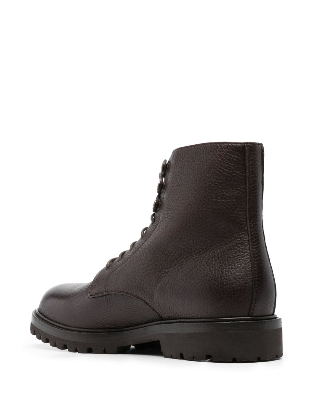 brown calf leather grained texture round toe front lace-up fastening branded leather insole flat rubber sole ankle-length This piece comes complete with a protective dust bag.