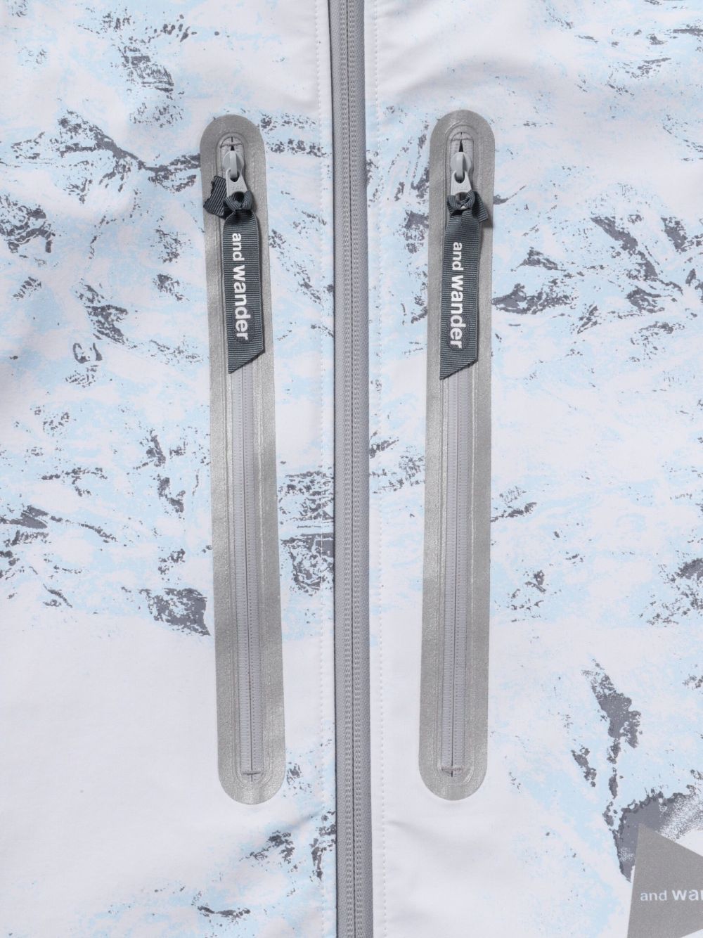 The Shield Printed Waterproof Jacket features a light blue hooded design with front zip fastening, as well as two chest pockets and touch-strap cuffs for maximum convenience. Its printed detailing adds a stylish touch to this functional and durable jacket, perfect for any rainy day.