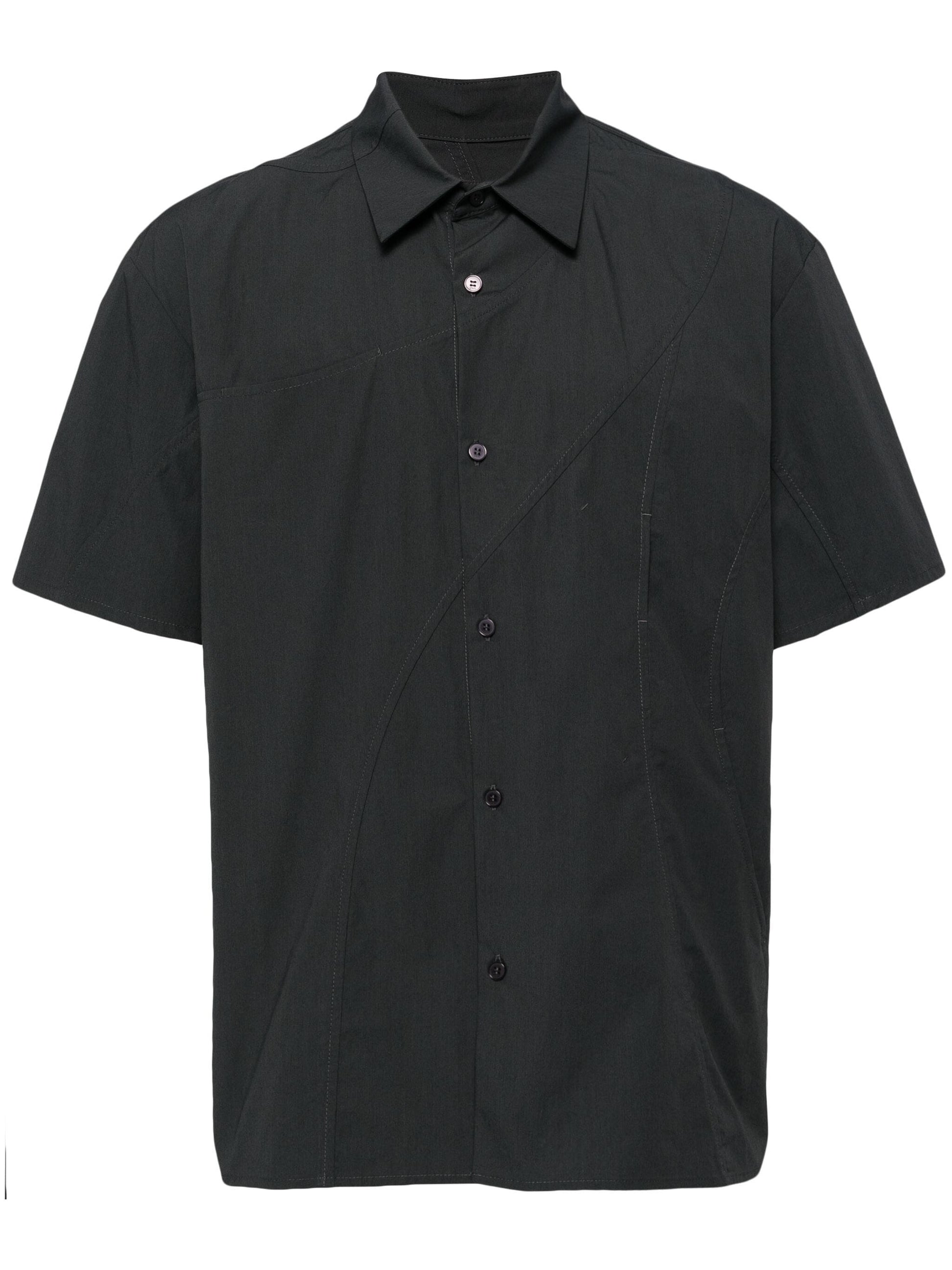charcoal grey short sleeves front button fastening decorative stitching classic collar