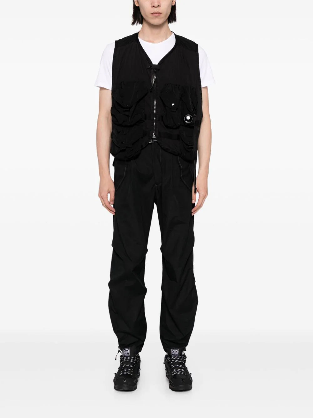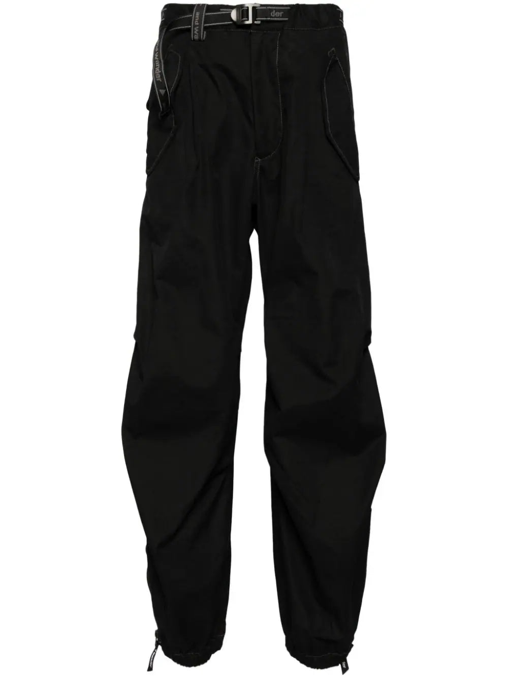 black/white water-repellent contrast stitching logo trim mid-rise belt loops concealed front zip fastening side zip fastening belted waist two side flap pockets two rear flap pockets tapered leg elasticated hem