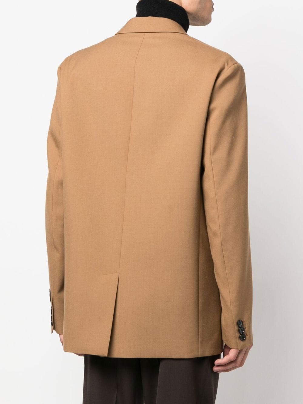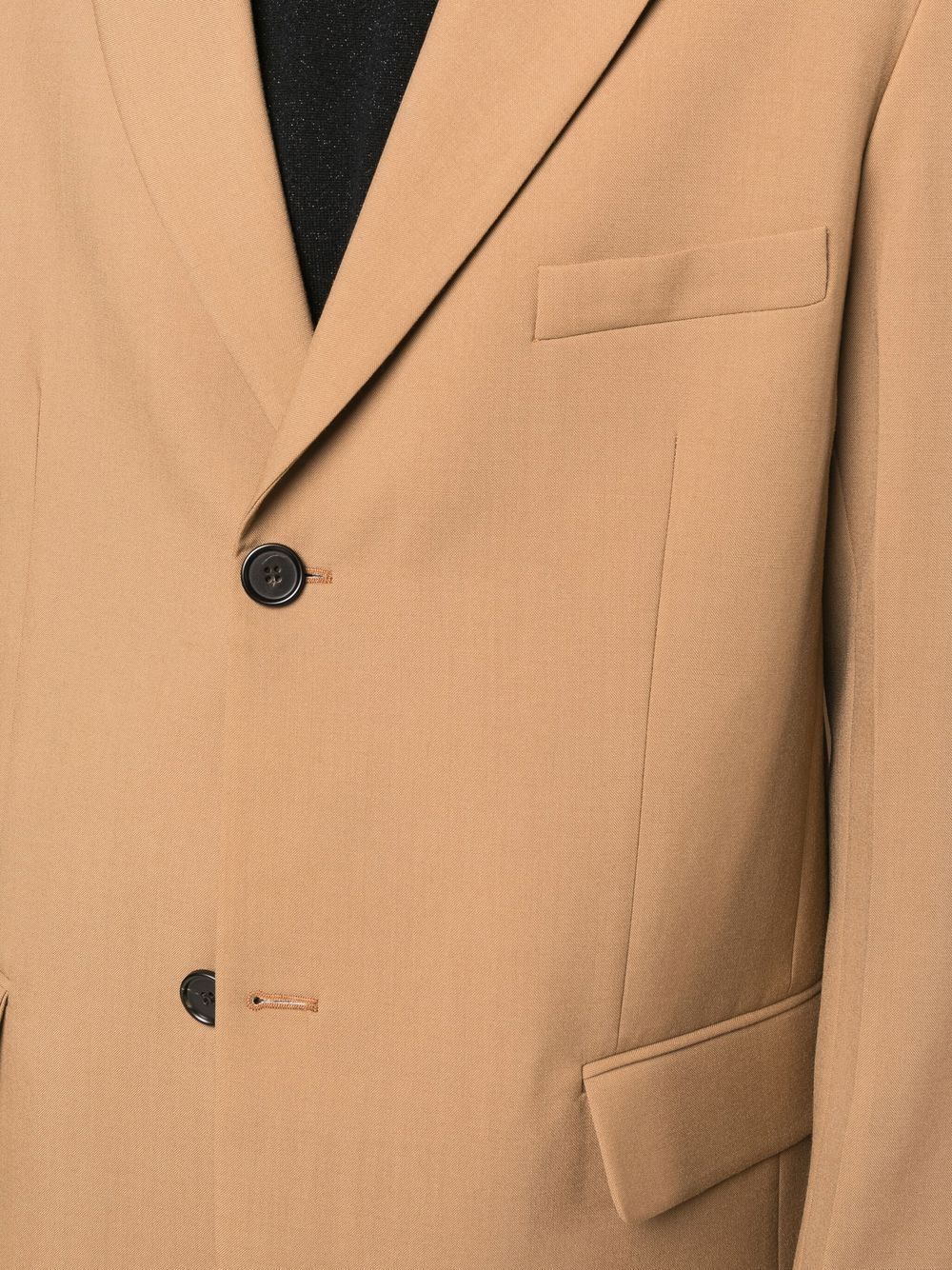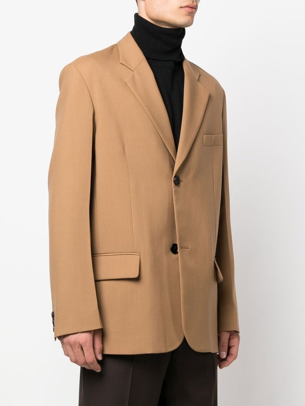 single-breasted tailored blazer from MARNI featuring camel brown, virgin wool blend, notched lapels, front button fastening, long sleeves, two side flap pockets and tailored cut.