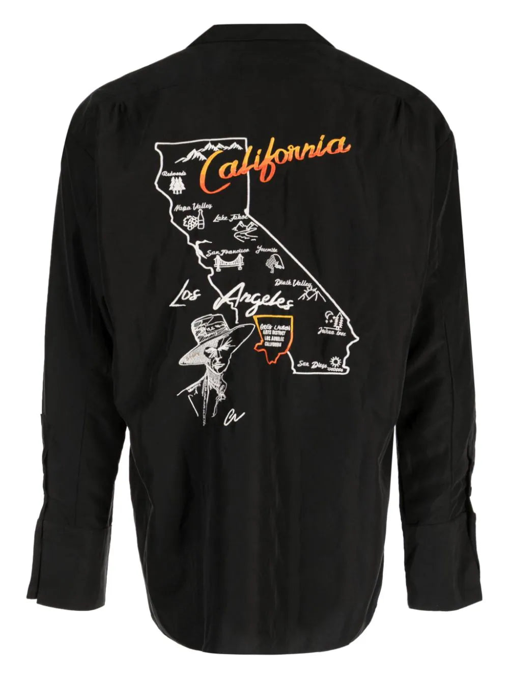 black/multicolour embroidered logo to the rear spread collar front button fastening drop shoulder long sleeves buttoned cuffs two button-fastening chest pockets two front patch pockets