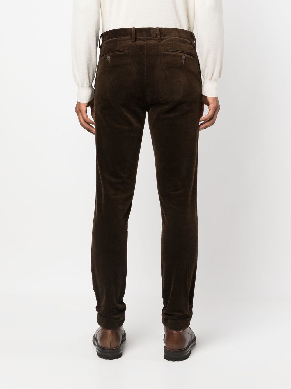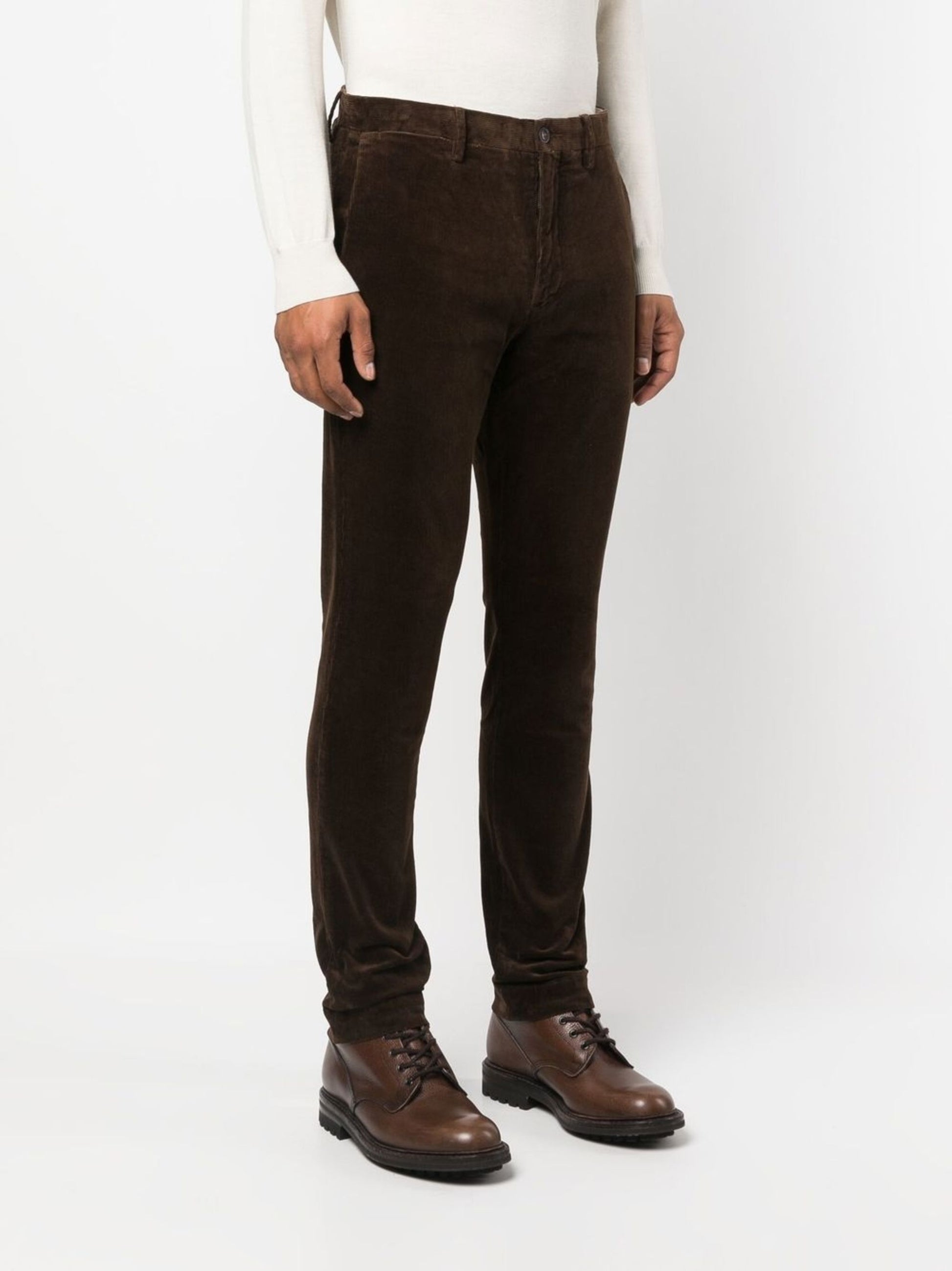 Expertly crafted with a chocolate brown stretch-cotton corduroy, these straight-leg trousers provide a slim and sleek fit. Designed with a mid-rise and belt loops, they also feature a concealed fly and button fastening for a polished look. Complete with four pockets for convenience and versatility.