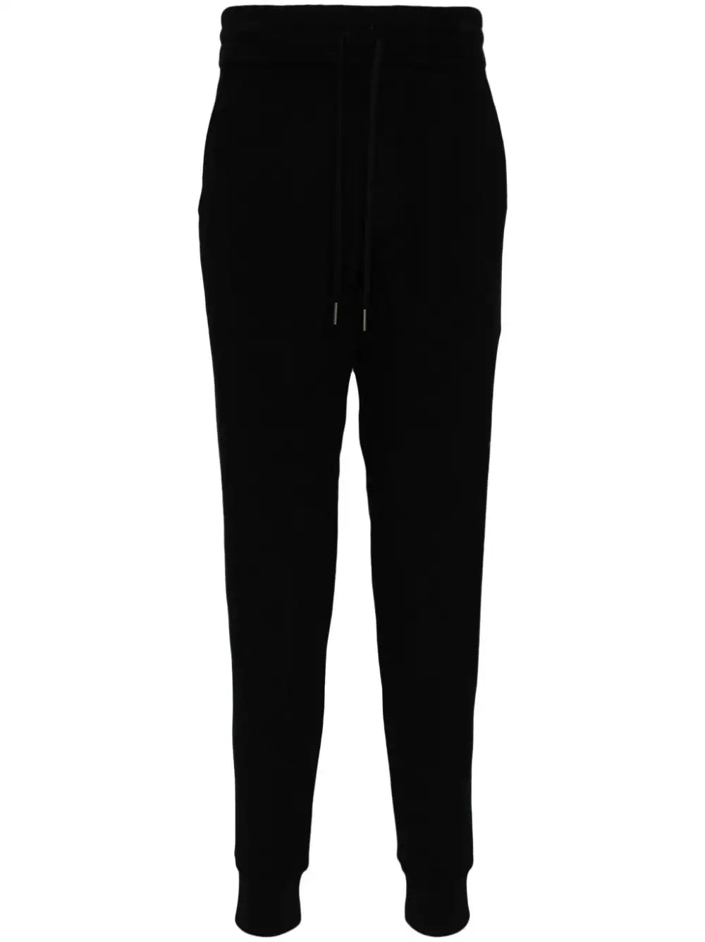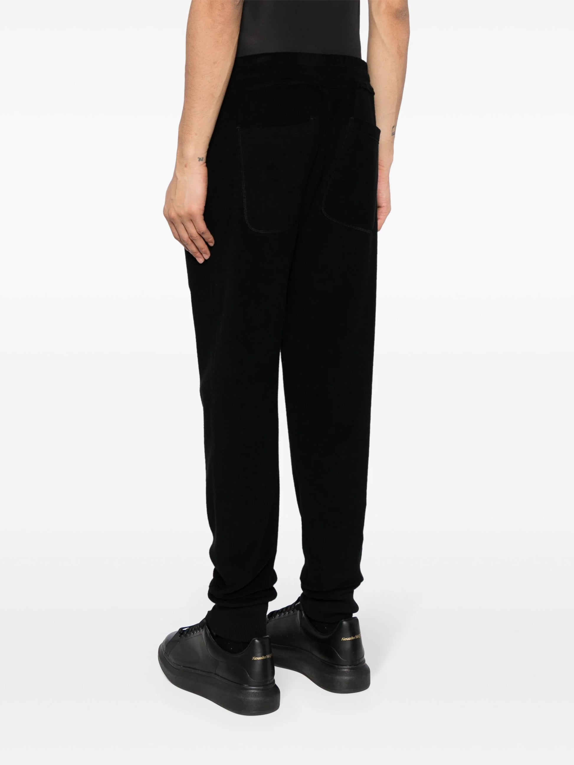 black cotton drawstring waist two side slit pockets straight leg elasticated ankles