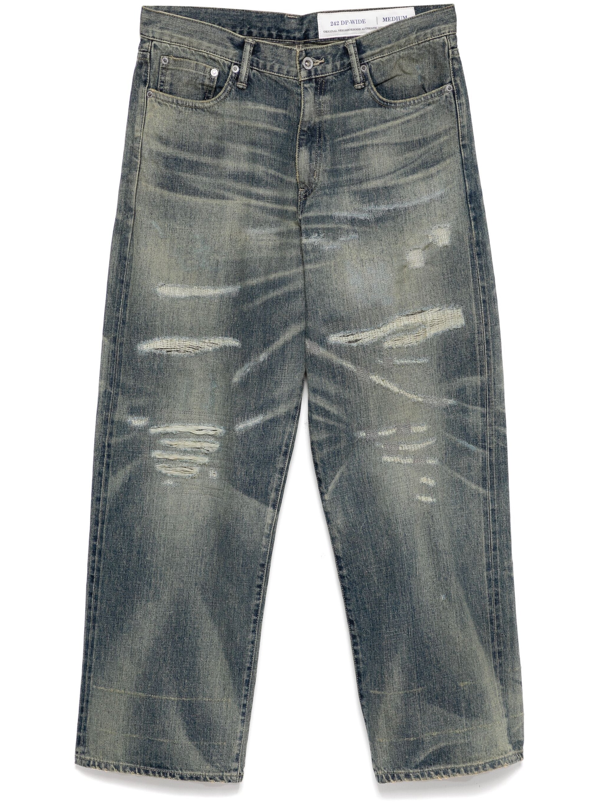 Expertly crafted from blue cotton denim, these Straight-Leg Jeans feature a stylish front button and zip fastening, along with classic ripped detailing and belt loops. With five pockets and a logo patch at the rear, these jeans are a versatile addition to any wardrobe. Achieve a timeless, casual look with their straight leg design.