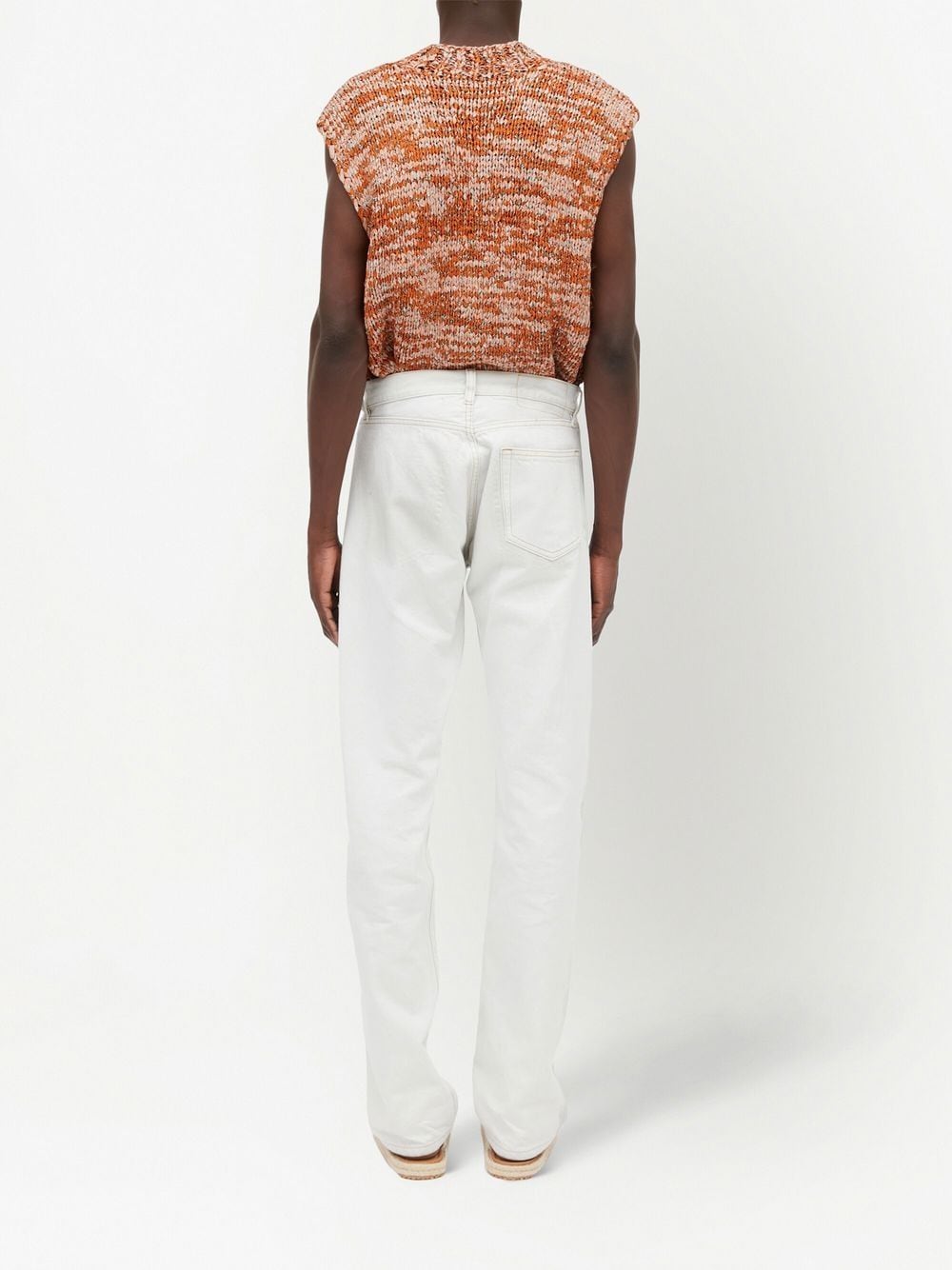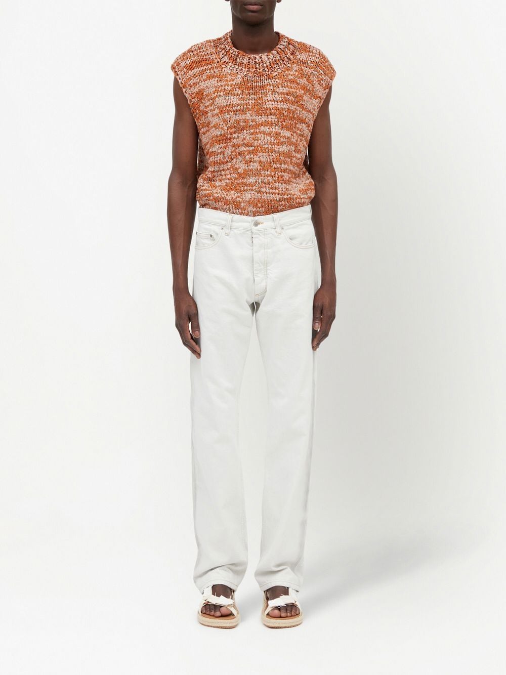 straight-leg mid-rise jeans from Maison Margiela featuring cotton, mid-rise, front button and zip fastening, belt loops, straight leg, classic five pockets and neutral.