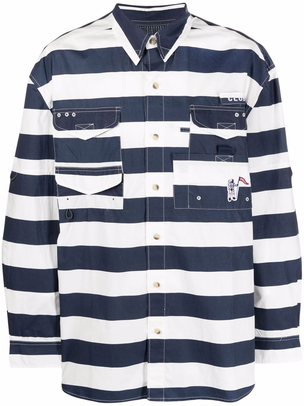 Navy-blue/bright-white cotton striped button-up shirt from BILLIONAIRE BOYS CLUB featuring two-tone design, horizontal stripe pattern, front button fastening and long sleeves.