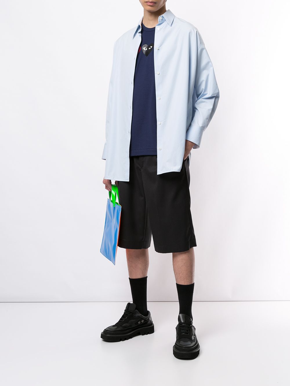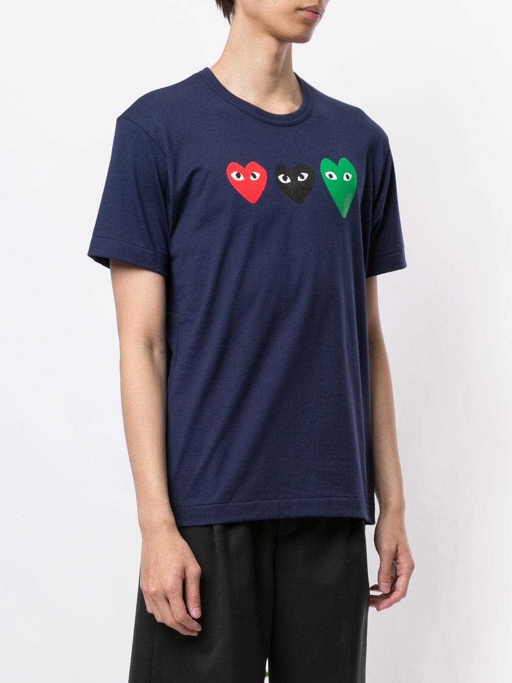 Blue cotton triple logo print T-shirt from Comme Des Garçons Play featuring a round neck, short sleeves and a straight hem.