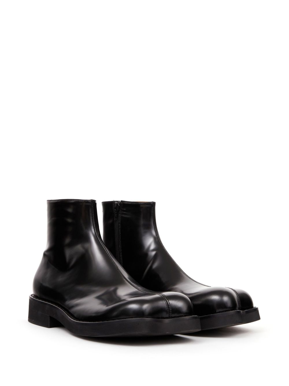 Crafted from black calf leather and featuring a brushed finish, these Trunk Leather Ankle Boots showcase a signature single-stitch logo and sculpted toe for a sleek and sophisticated look. With a side zip fastening and ankle-length design, these boots offer both style and convenience. The branded leather insole and leather sole ensure lasting comfort and quality.