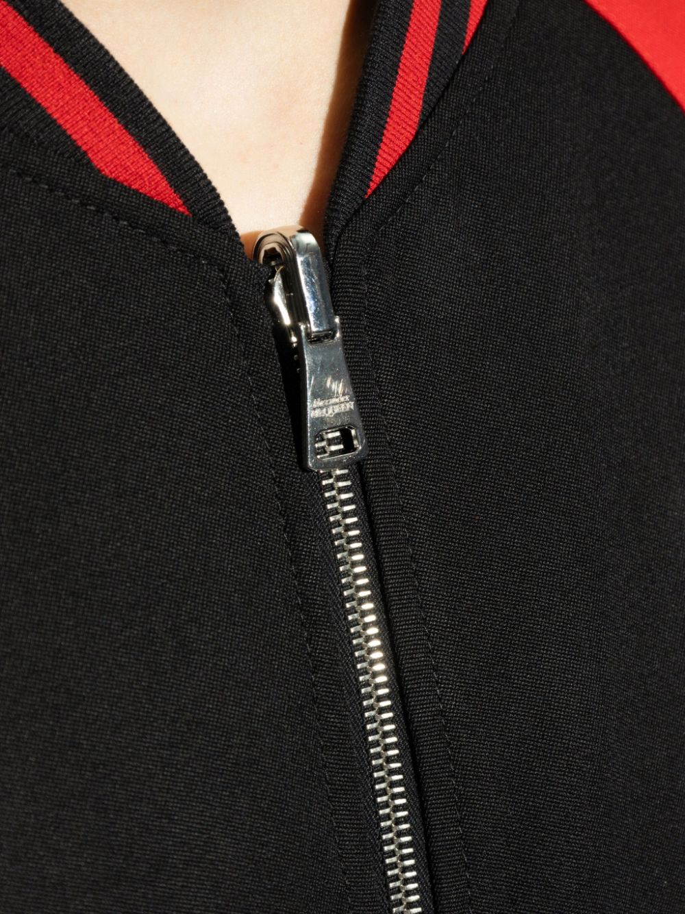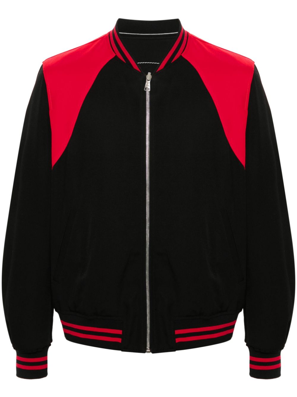 As a professional in the fashion industry, I can confidently assert that our Two-Tone Reversible Bomber Jacket is the perfect combination of style and functionality. Made with wool in a sleek black and red design, this jacket is reversible and features a branded zip puller, stand-up collar, and ribbed cuffs and hem. With its customizable fit and versatile look, it's a must-have for any wardrobe.