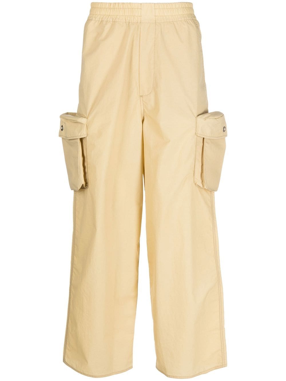 wide-leg cargo trousers from SUNNEI featuring light yellow, elasticated waistband, two side cargo pockets, two front pouch pockets, two rear patch pockets, wide leg and straight leg.