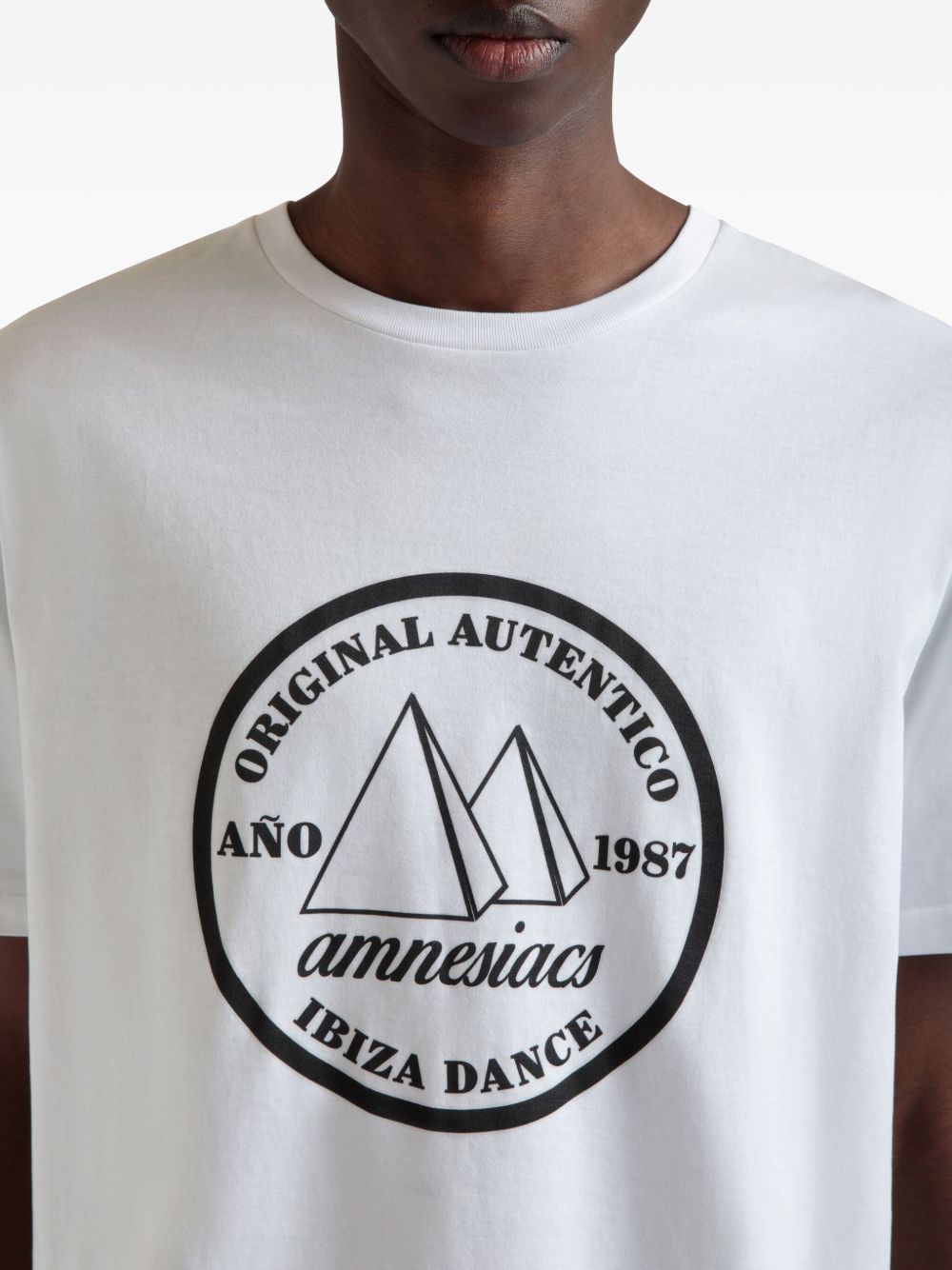 This white crew neck shirt features short sleeves and a graphic print on the front, designed by the renowned DJ Leo Mas for Amnesia nightclub. Expertly crafted for comfort and style, this shirt is a must-have for any music lover.