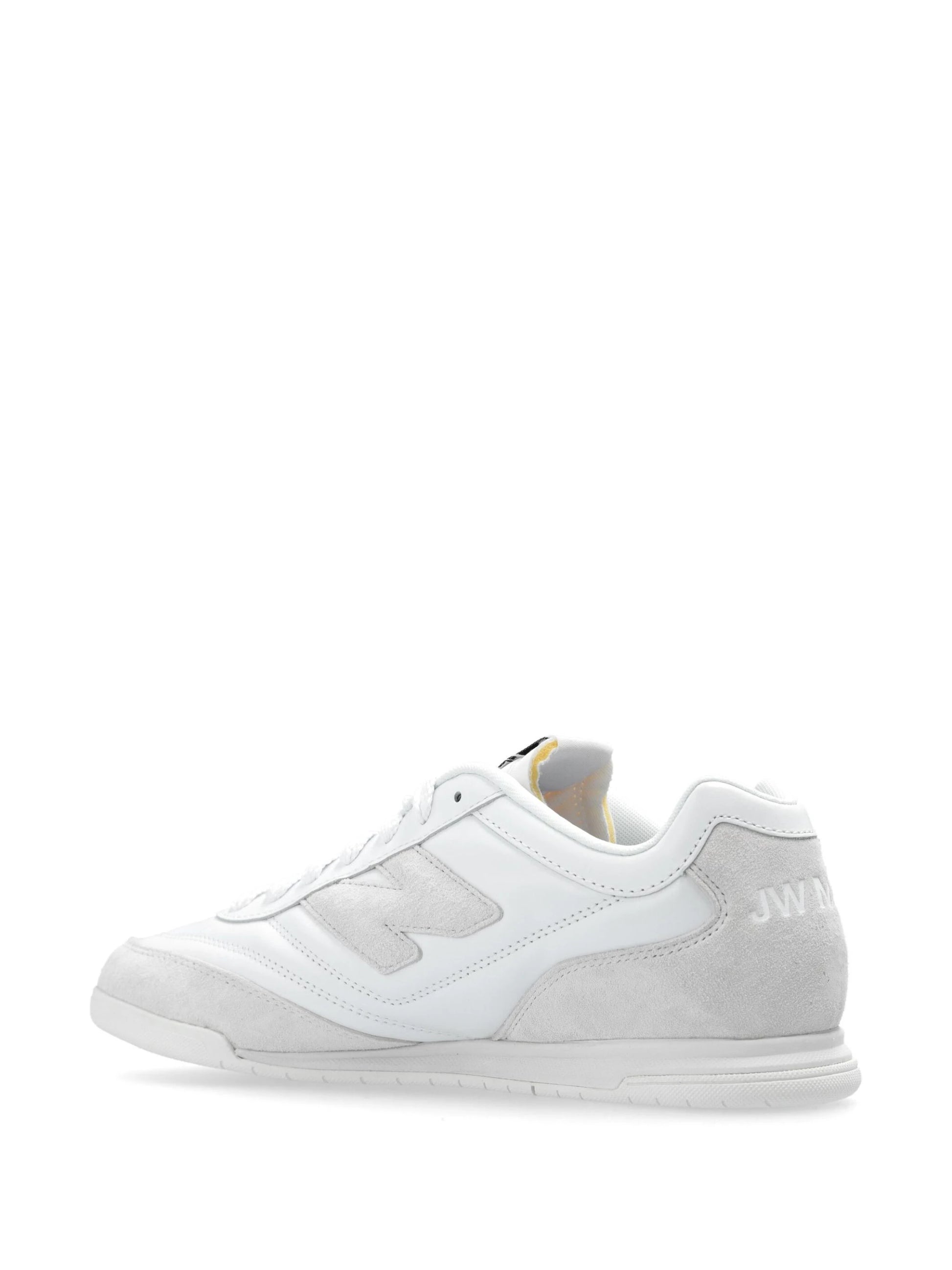 white calf leather smooth grain suede panelling logo patch at the tongue logo patch to the side branded heel counter front lace-up fastening round toe branded insole flat rubber sole