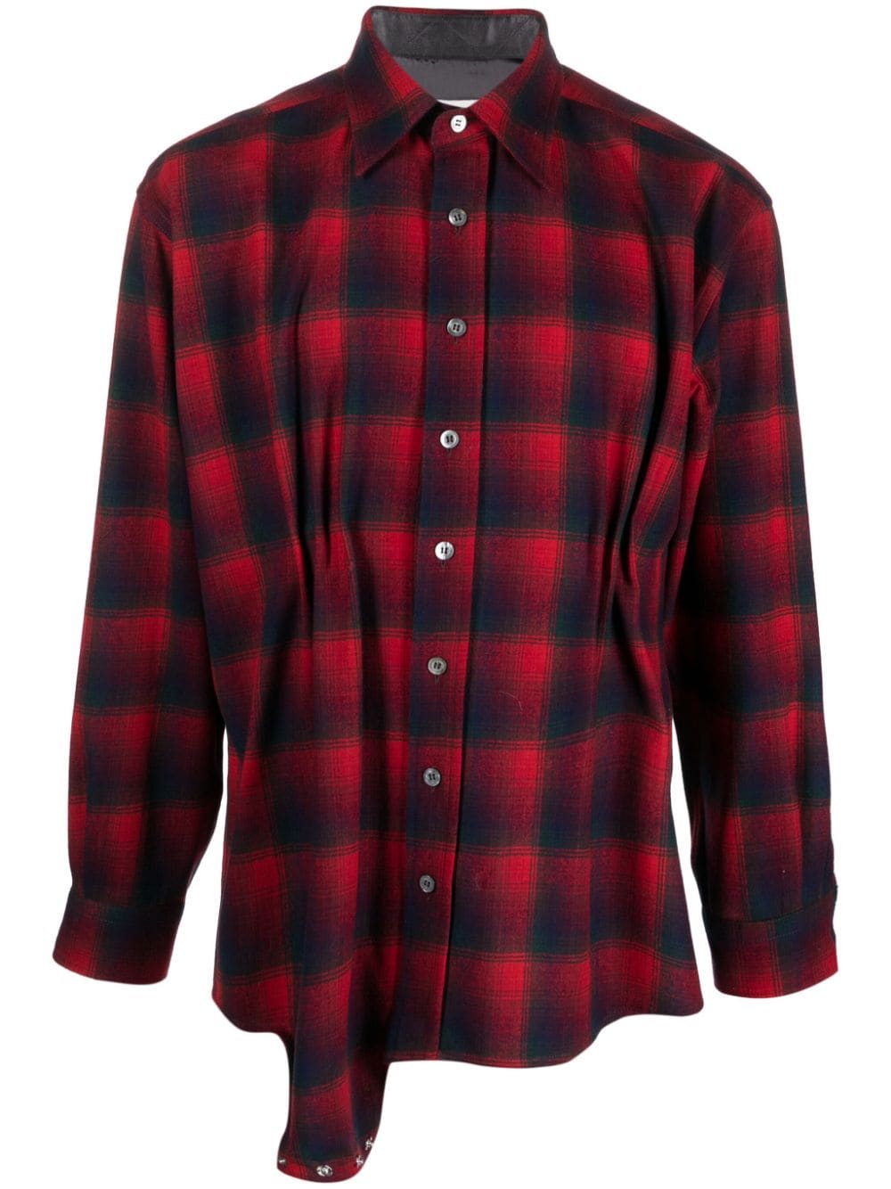 black/red wool flannel convertible design plaid check pattern gathered detailing signature four-stitch logo patch detail mother-of-pearl buttons button-down collar front button fastening long sleeves buttoned cuffs press-stud fastening at base Just a reminder that this piece must be tried on over your own garments.
